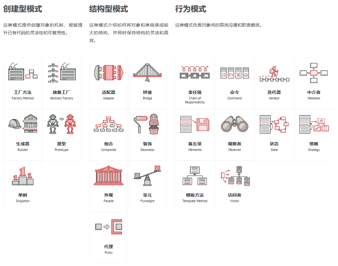 设计模式是一套被反复使用的、多数人知晓的、经过分类编目的、代码设计经验的总结。
