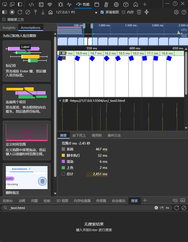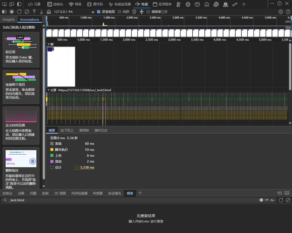 然而因为我们没有特殊动画,浏览器在5000ms内只输出了一帧.........