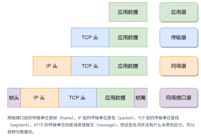 - 应用层是工作在操作系统中的用户态,传输层及以下则工作在内核态。
