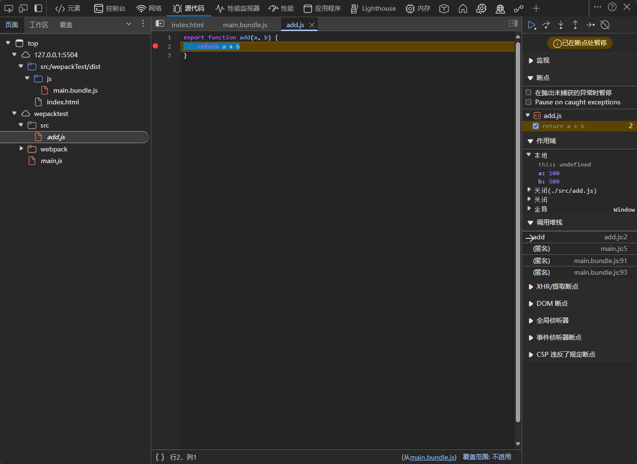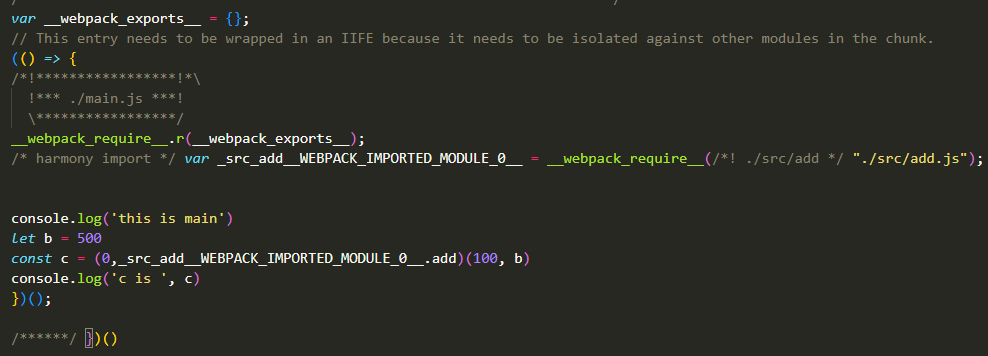 const c = (0,_src_add__WEBPACK_IMPORTED_MODULE_0__.add)(100, b)5、打包结果执行和使用